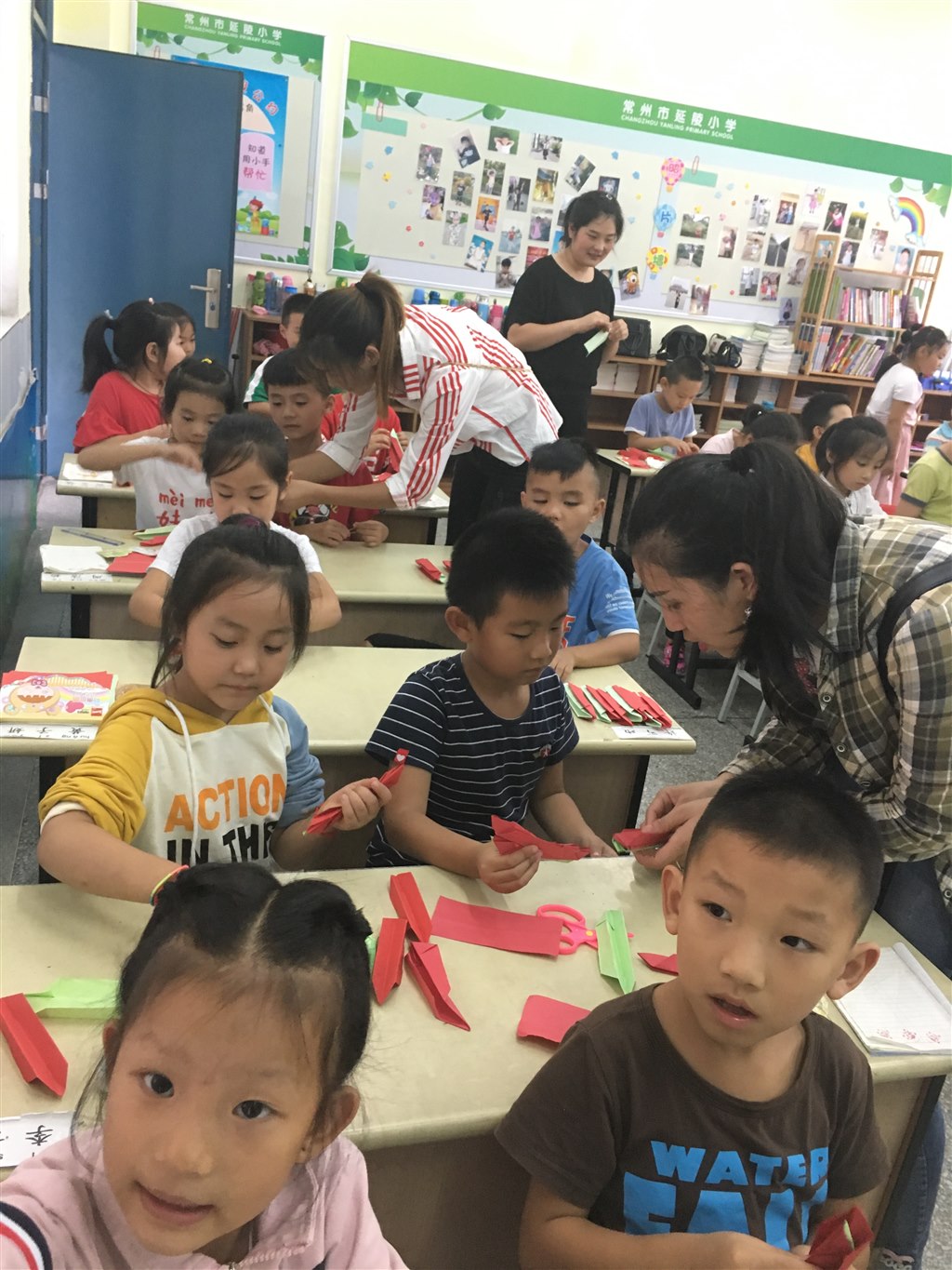 然后,就是本次活动的重头戏——李诗琪妈妈教孩子们折玫瑰纸灯笼,为此,班级的家长志愿者分成8个小组,从旁协助孩子们完成这一挑战。看着一朵朵美丽绽放的玫瑰纸灯,孩子们笑意盈盈,满足溢于言表。