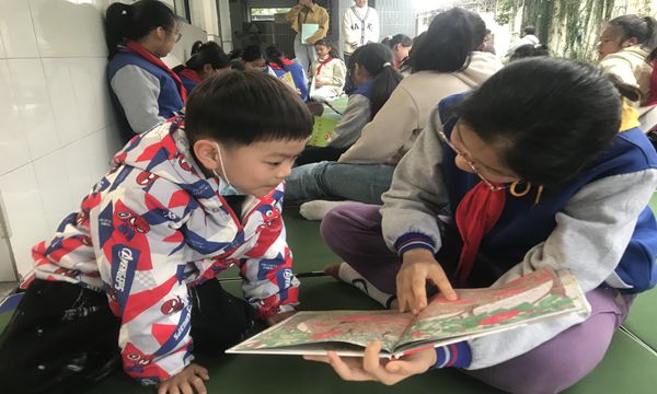 六(7)班王雨星同学说:“我分享的是绘本《布娃娃来了》。当我讲到布娃娃们给奶奶带来了礼物,有花、鱼、果子、萝卜……奶奶听了很高兴时,我看到了身边小学妹眼里的光……那一刻,我知道这个故事已经打动了她。”“给我讲故事的是三位大哥哥,他们可真了不起,认识很多很多字,故事讲得也很精彩。我也要像大哥哥一样,读很多很多书。” 一(1)班的侯浩晨对阅读充满了向往。